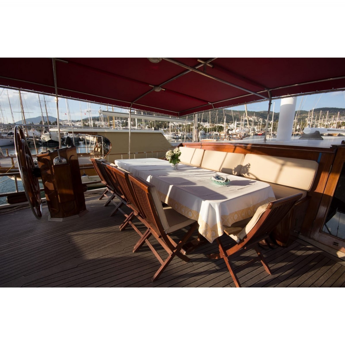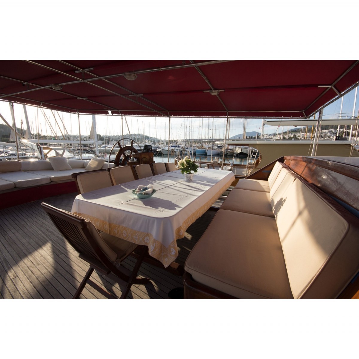 Also you can choose our fullboard standart menus with 55€ per person per day (including breakfast, Lunch, Dinner, 5 o clock tea with snacks) , luxury menus with 65€ per person per day (including breakfast, lunch, dinner, 5 o'clock tea with snacks and non-alcoholic soft drink) or deluxury menu with 85€ per person per day (including breakfast, lunch, dinner, 5 o'clock tea with snacks and non-alcoholic soft drink) which are organised by our qualified chiefs for different choices. You can change all our menus according to your Religion, Health and eating habits as you desire. Our menu prices valid for groups of minimum 8 people (8 adults) and for weekly charters. Our menu prices are FREE for our guests who are younger then 6 years old and half price for the kids who are between 7 to 12 years old.