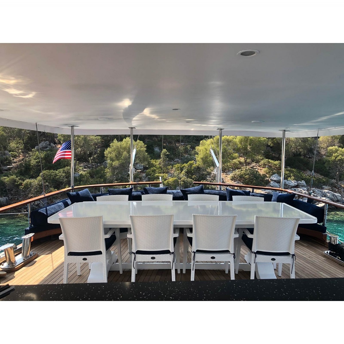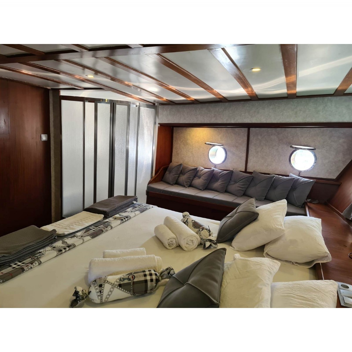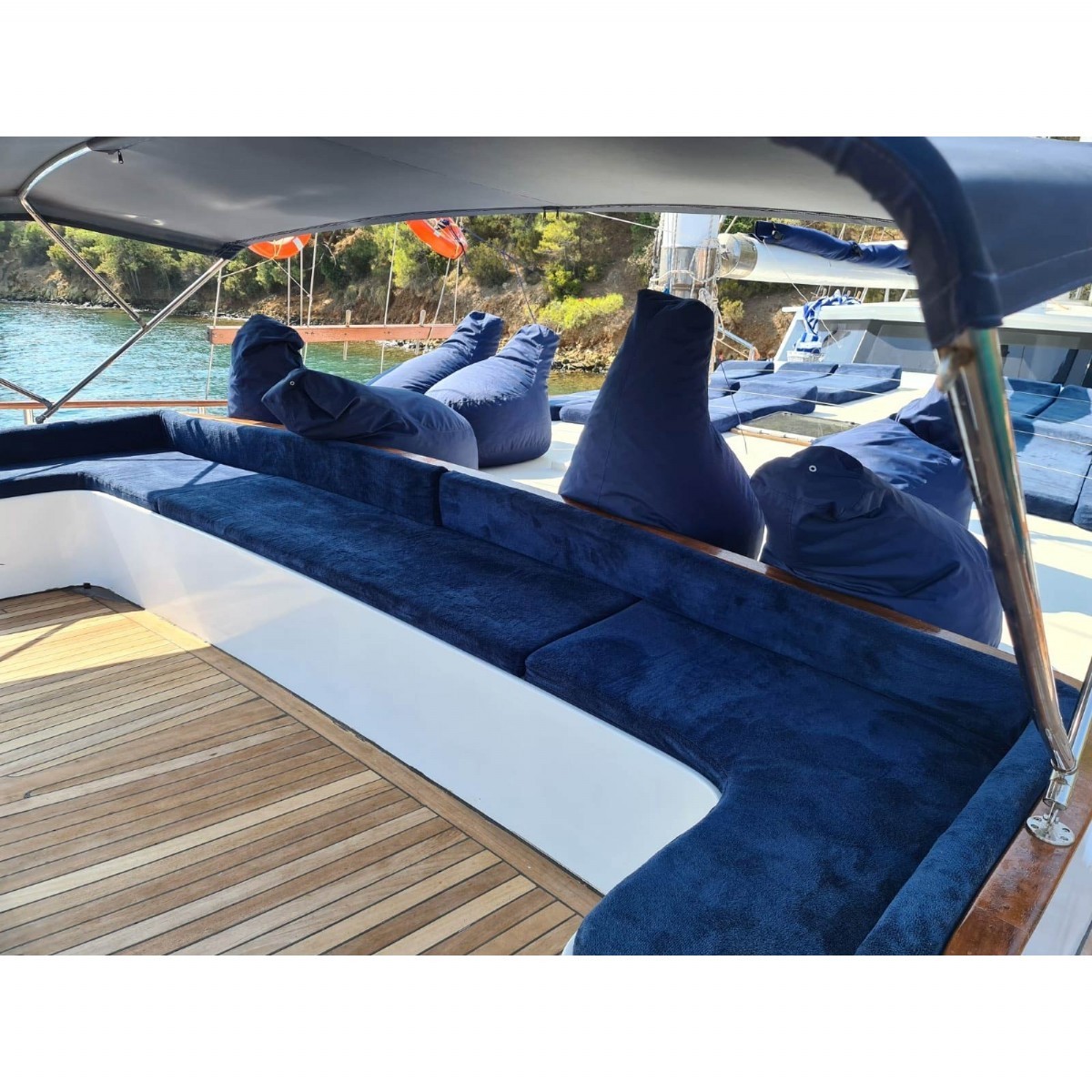 Also you can choose our fullboard standard menus with 55€ per person per a day (including breakfast, Lunch, Dinner, 5 o clock tea with snacks) , Luxury menus with 65€ per person per a day (including breakfast, lunch, dinner, 5 o'clock tea with snacks and non-alcoholic soft drinks), deluxe menü 85€ per person per day (including breakfast, lunch, dinner, 5 o'clock tea with snacks and non-alcoholic soft drinks) or ultraluxury menu 125€ per person per day (including breakfast, lunch, dinner, 5 o'clock tea with snacks and non-alcoholic soft drinks)which are organised by our qualified chiefs. You can change all our menus according to your Religion, Health and eating habits as you desire. Our menu prices valid for groups of minimum 8 people (8 adults) and for weekly charters. Our menu prices are FREE for our guests who are younger then 6 years old and half price for the kids who are between 7 to 12 years old.